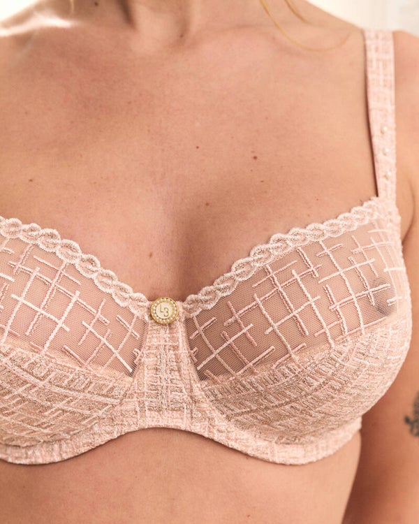 - Tussen de cups is op subtiele wijze een strass-sieraad met het Louisa Bracq logo geplaatst, wat de beha een extra vleugje elegantie geeft