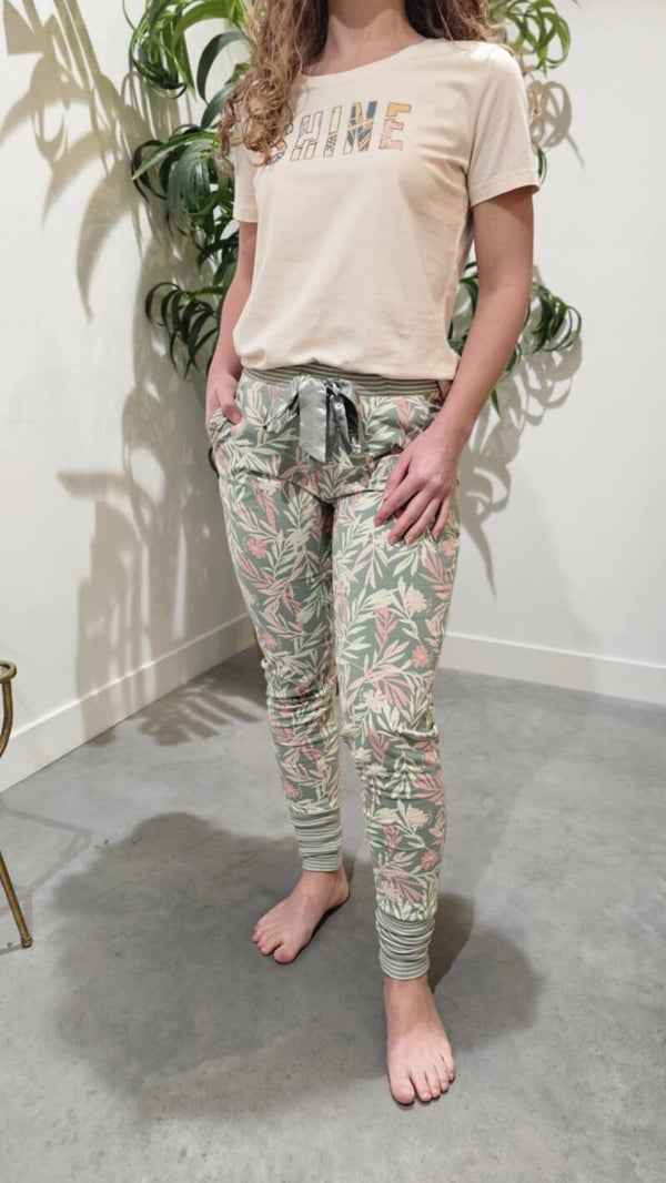 - De broek is voorzien van een sierkoord en boorden aan de onderzijde