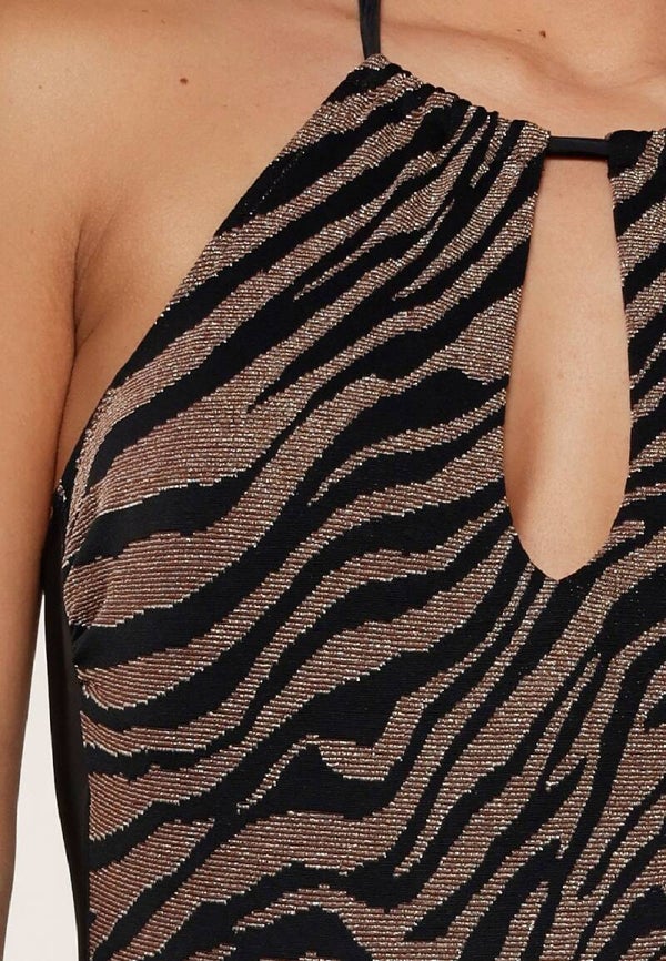 Materiaal: 58% recycled polyamide, 28% polyester, 8% elastan, 6% metalic