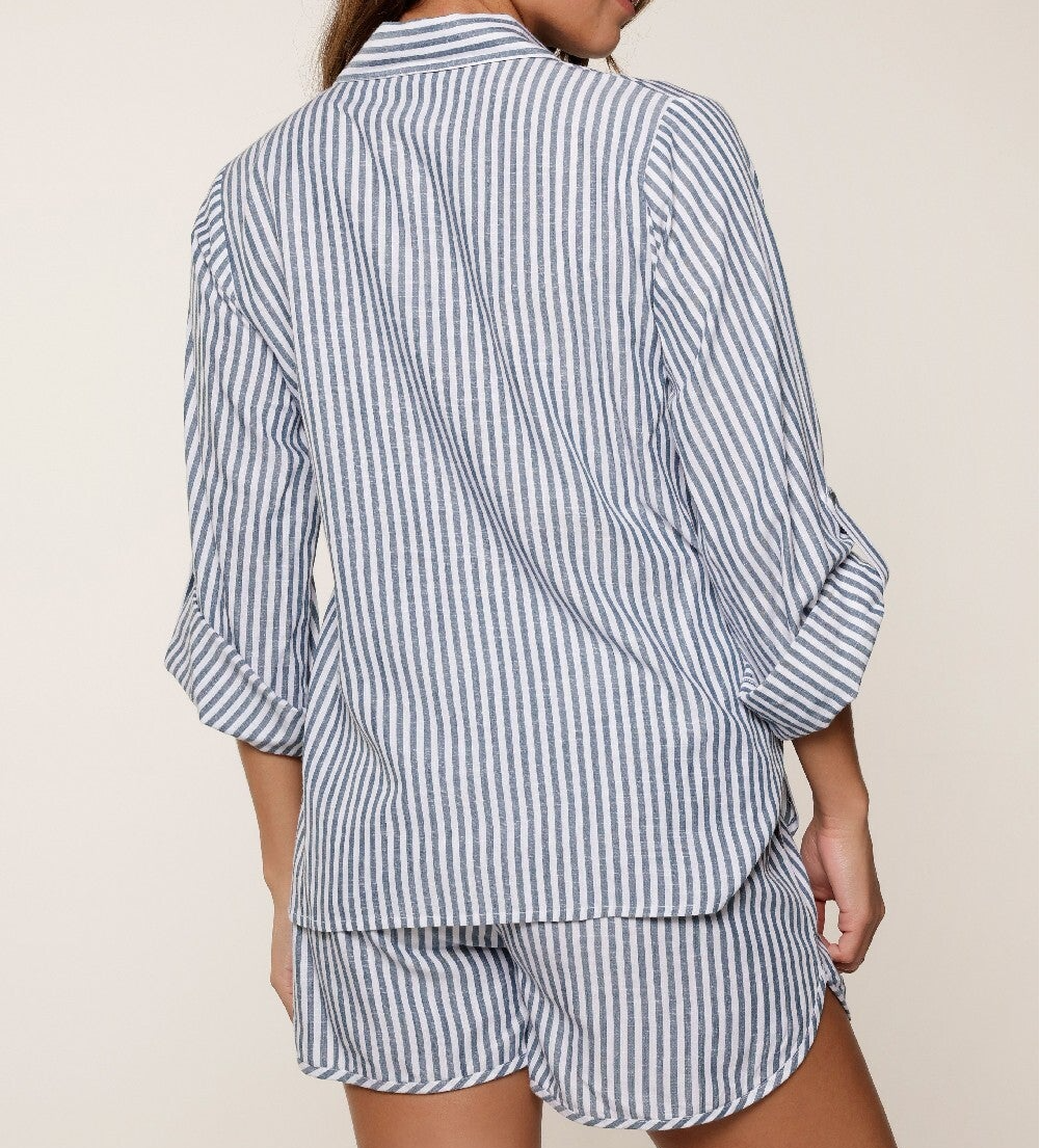 Ontdek comfort en stijl met deze gestreepte set van LingaDore. De top heeft halflange mouwen, een steekzakje aan de voorkant en een kraag. De bijpassende short heeft een elastische tailleband voor een goede pasvorm. Gemaakt van viscose en geschikt voor dagelijks gebruik.