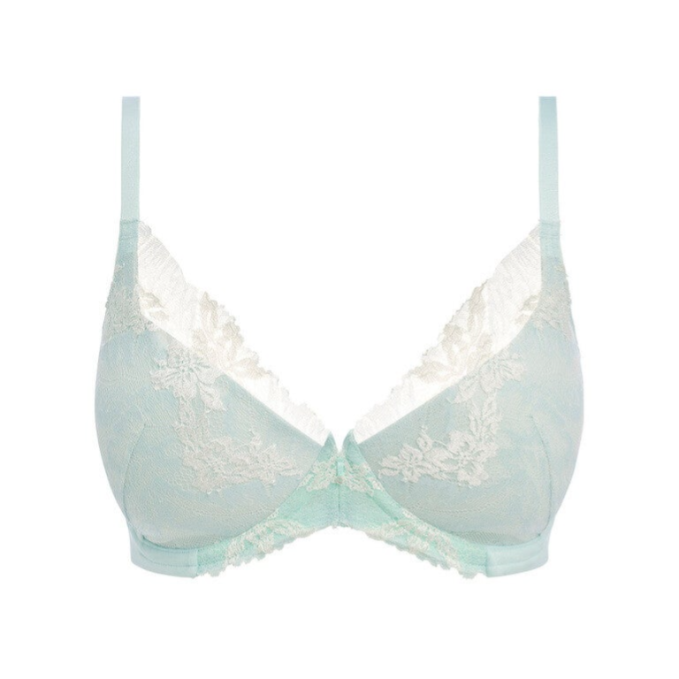 Romantiek hangt in de lucht en wie vindt de combinatie van romantiek en comfort nou niet fijn?! Comfort wordt gegarandeerd door het gebruik van verborgen elastieken op belangrijke plekken en cup sling-naden voor ondersteuning aan de zijkanten. De delicate stretchkant en zachte microvezel combinatie van Wacoal Most Divine is perfect om uw dagelijkse leven te verbeteren. De Eau-De-Nil-kleur heeft een tweekleurig blauw/groen kant met marshmallow accenten.