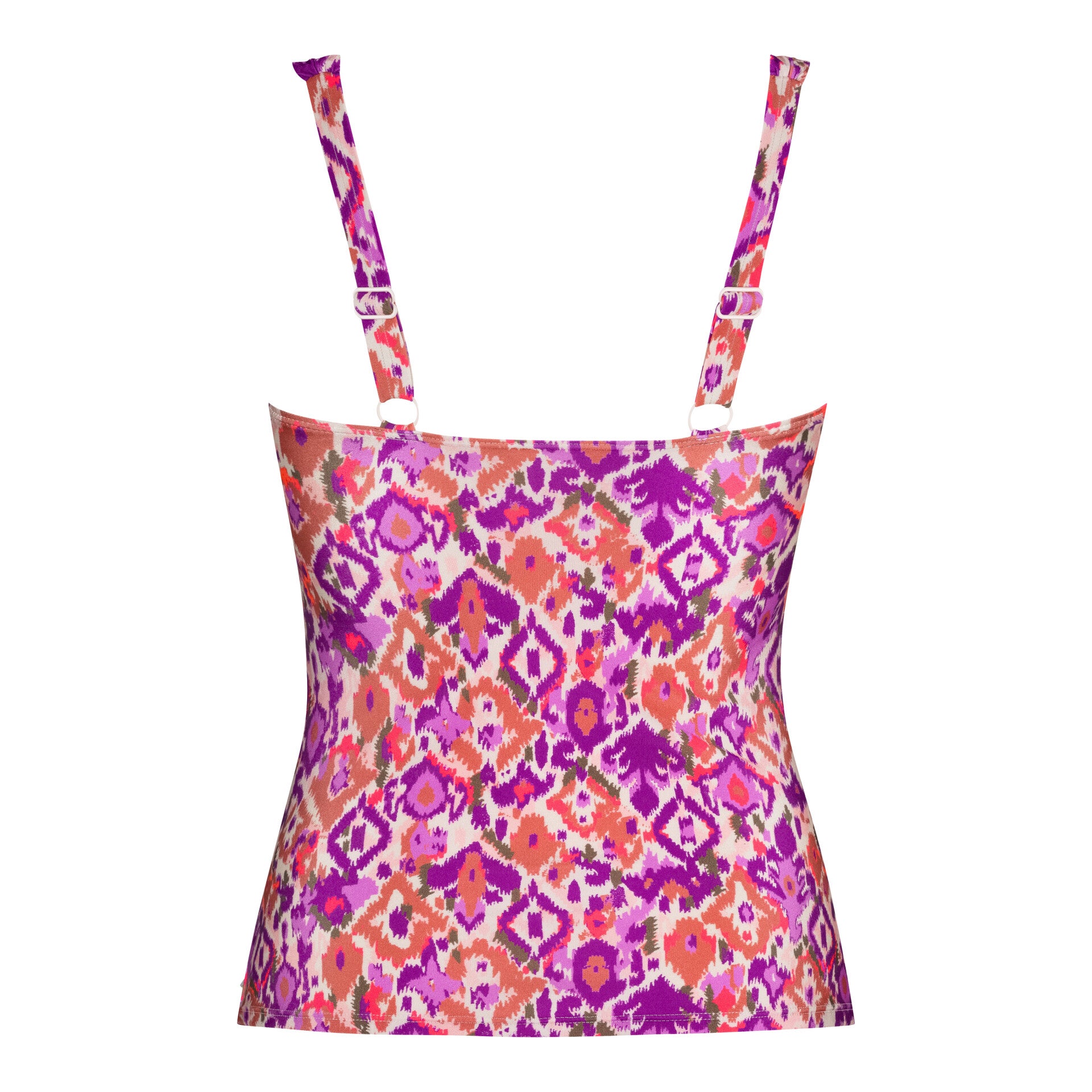 De ten Cate Beach Twisted Tankini Top sluit mooi aan en heeft flatterende plooitjes op de buik en taille. De ten Cate Beach Twisted Tankini Top heeft, zoals de naam als zegt, een leuke twist aan de voorzijde op de voorgevormde cups. De tankini top heeft verstelbare, elastische banden voor goed draagcomfort. De tankini top heeft geen beugel, maar geeft wel voldoende steun door o.a. de baleinen aan de zijkanten en de dubbelstof aan de voorzijde. Combineer de ten Cate Beach Twisted Tankini Top met één van de bijpassende bikini broekjes uit de Summer Ikat collectie.