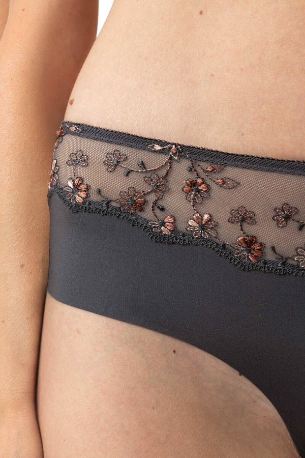 De hipster uit de Mey Delightful collectie heeft een perfecte mix van comfort en elegantie. Het mooie borduurwerk aan de voorzijde zorgt voor een elegante look, terwijl de naadloze achterzijde juist zorgt voor comfort en dagelijkse draagbaarheid.