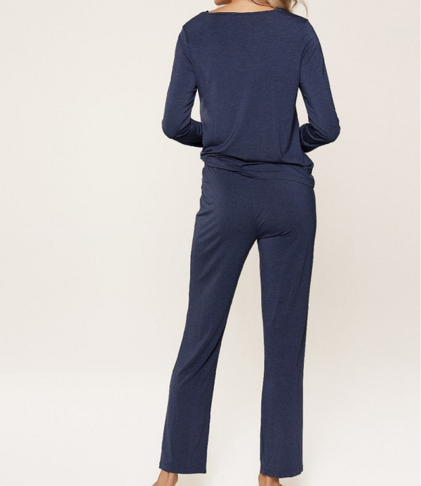 Deze zachte pyjama set van LingaDore bestaat voor 95% uit bamboo, waardoor deze heel comfortabel aanvoelt en de stof ademend is. Het kant langs de halslijn maakt de pyjama vrouwelijk en elegant. De elastieken boord van de broek zorgt voor een comfortabele fit.